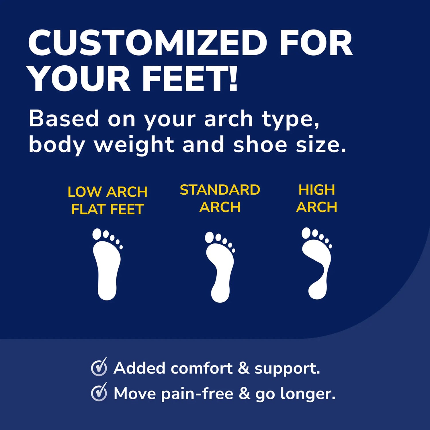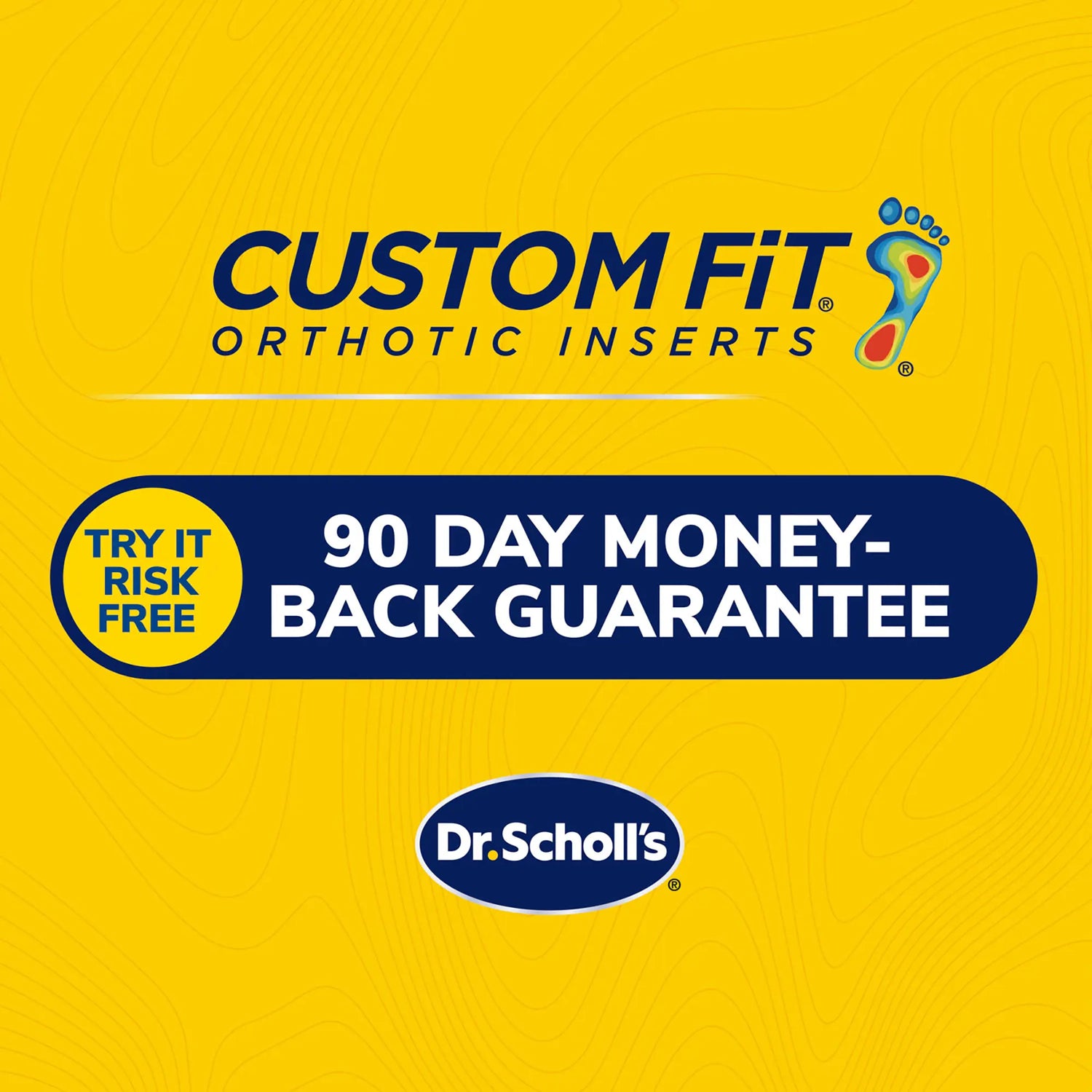 Dr. Scholl's® Custom Fit® Pain Relief Orthotic Inserts are a customized solution for relief, comfort, and support from the most recognized name in footcare for over 100 years! Take the Guesswork Out of Getting Pain Relief, Comfort and Support​. Get 5-in-1 clinically proven pain relief including lower back pain, knee pain, plantar fasciitis, heel pain, and achy feet. Plus support for all arch types including flat feet. These insoles are customized for your feet utilizing your arch type, body weight and shoe size, so they relieve pressure and deliver more targeted arch support versus one size fits all insoles. A simpler and more affordable orthotic solution than podiatric prescribed orthotics for pain from daily activities. Join over 20 million users and find your fit to get the cushioning and support your feet need!