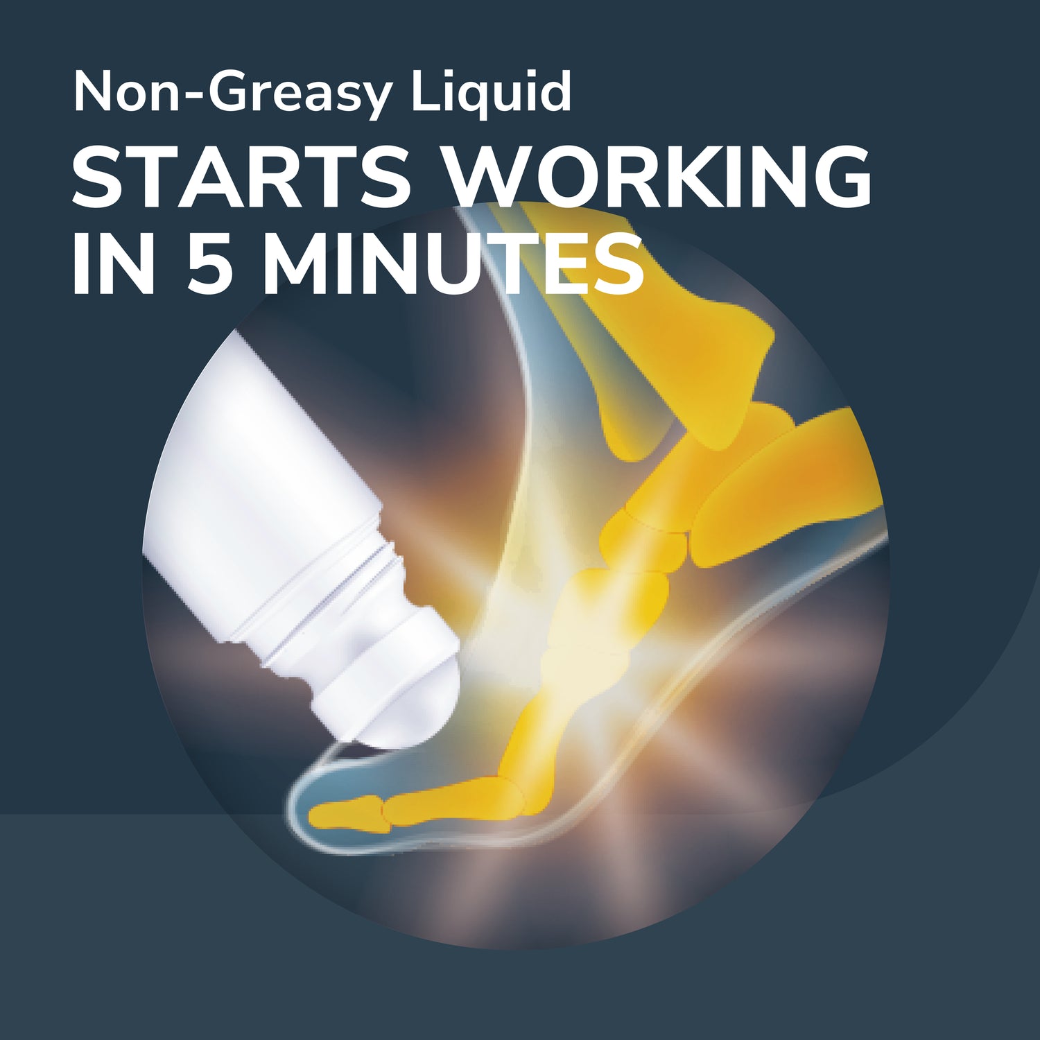 Dr. Scholl’s® Foot Pain Relief Liquid Roll-On provides clinically tested 12-hour relief from foot and nerve pain using maximum strength lidocaine without a prescription, plus cooling menthol. This non-greasy liquid roll-on starts working in 5 minutes for fast relief by blocking nerve pain signals to relieve pain in the feet.