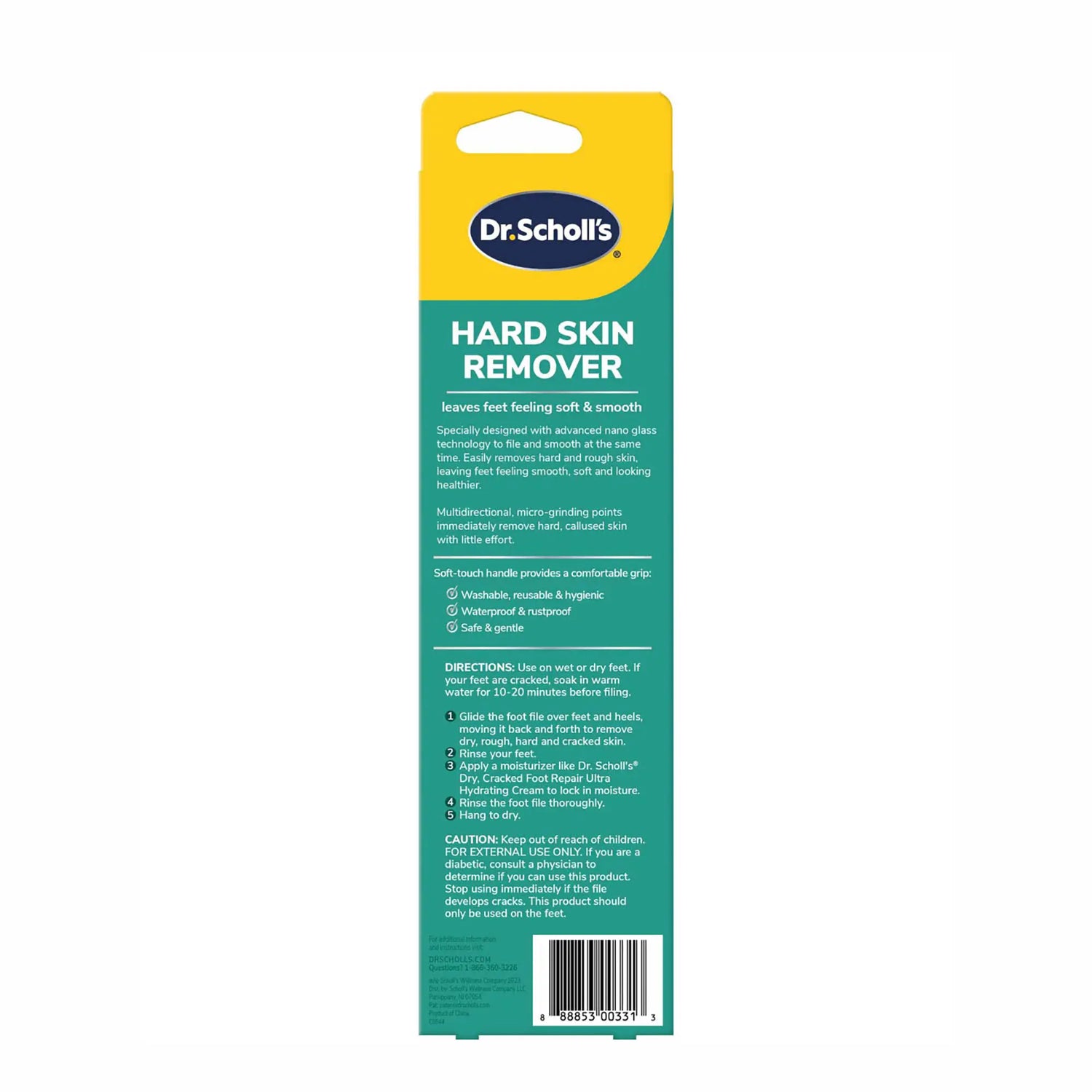 Dr. Scholl’s Hard Skin Remover-Nano Glass Foot File is designed with a textured nano glass filing surface. Multidirectional micro-grinding points immediately remove hard, callused skin and buff skin smooth with little effort.