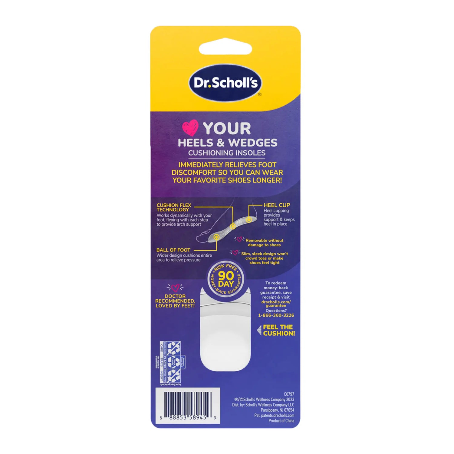 Dr. Scholl's® Love Your Heels & Wedges 3/4 Length Insoles are specifically designed for women who experience foot discomfort from high heels. Whether you're heading to work, having a girl's night out, dancing the night away at a wedding, or just want to wear your fancy shoes, you shouldn't have to experience shoe discomfort. Don't sacrifice feeling good for looking good, use these in your heels & wedges for all day comfort and protection.
