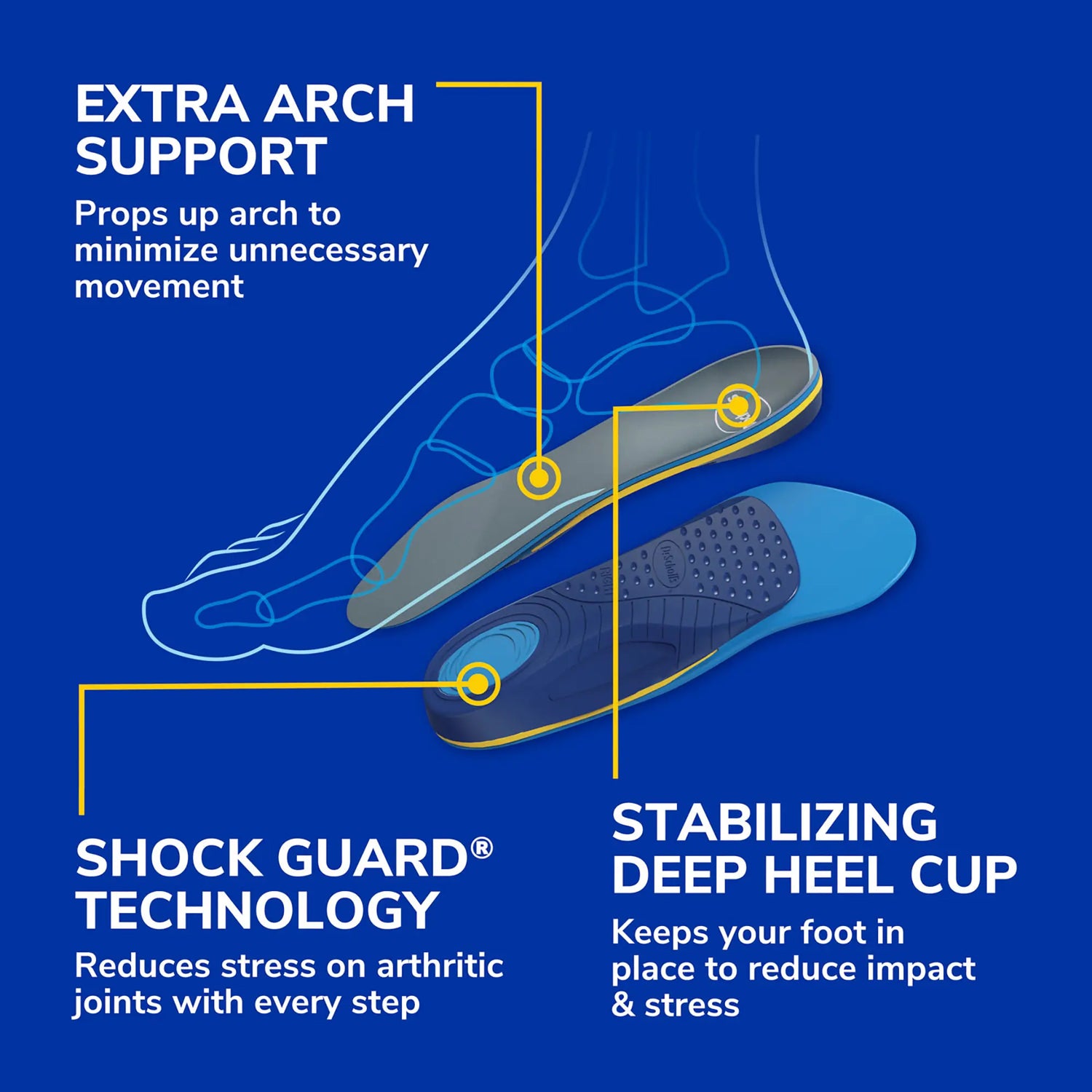 We designed Dr. Scholl’s® Arthritis Support Insoles Pain for people who suffer from osteoarthritis pain in the feet, knees and hips.