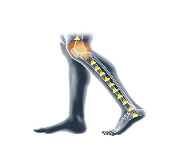 • With each step you take, the impact of you foot hitting the ground sends shock wave all the way up to your ankle, knees, and lower back. These consistent shock signals over time can result in pain and wear & tear on your knees.