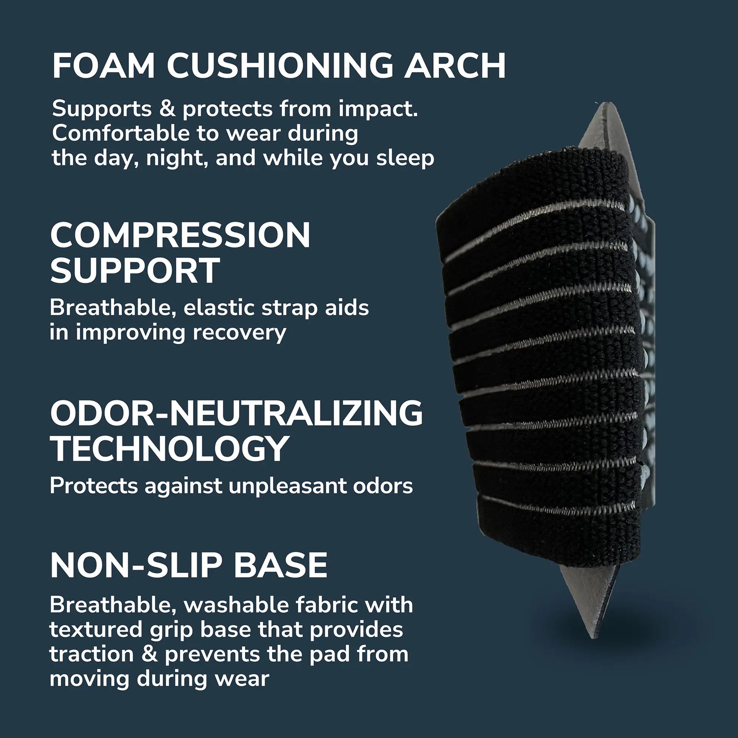 1. Foam Cushioning Arch - Supports & protects from impact. Comfortable to wear during the day, night, and while you sleep