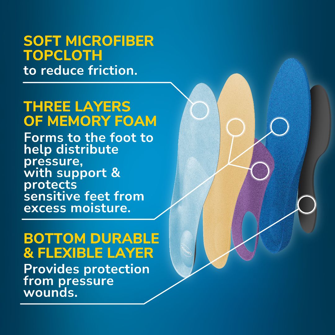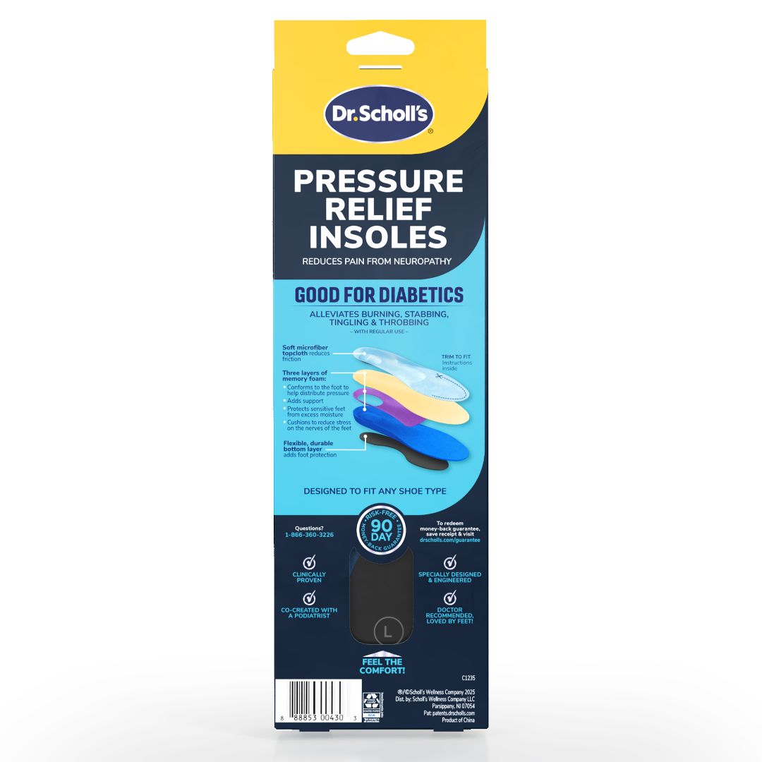 Dr. Scholl’s Pressure Relief Insoles are the only insoles clinically proven to reduce episodes of nerve pain, due to diabetic neuropathy. Specially designed in collaboration with a podiatrist, these insoles help distribute foot pressure to relieve hotspots that can lead to irritation or ulceration. The open-cell cushioning foam retains warmth to support healthy circulation and ease cold feet. Ideal for those suffering from burning, tingling, stabbing, or throbbing sensations, they deliver targeted relief and all-day comfort. Suitable for diabetics and anyone managing nerve-related foot pain.